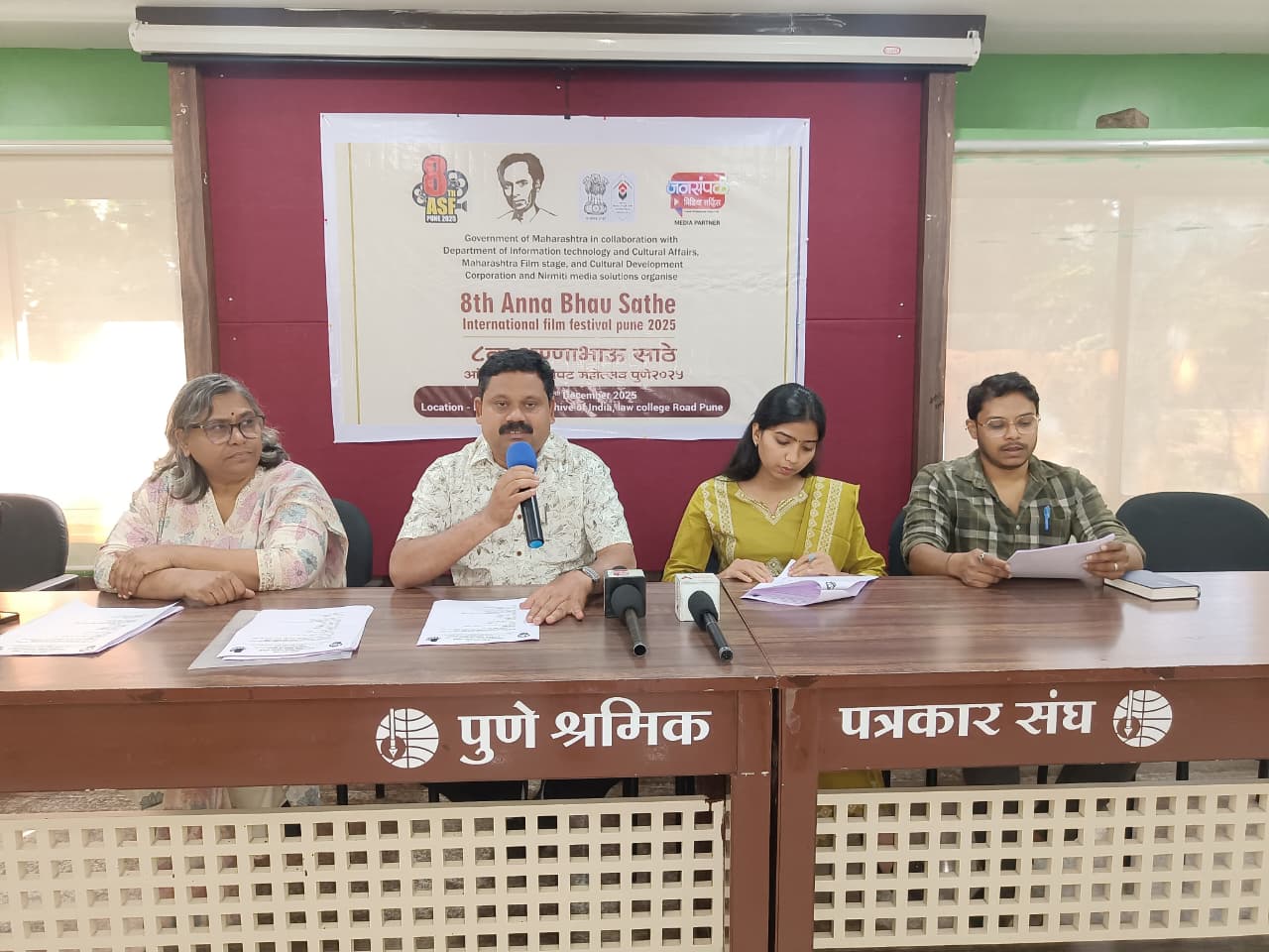 पुणे : महाराष्ट्र शासनाच्या सांस्कृतिक कार्य विभाग तसेच महाराष्ट्र चित्रपट, रंगभूमी व सांस्कृतिक विकास महामंडळ यांच्या सहकार्याने अण्णा भाऊ साठे आंतरराष्ट्रीय चित्रपट महोत्सव समिती व निर्मिती मीडिया सोल्युशन्स यांच्या वतीने आयोजित ८ वा अण्णा भाऊ साठे आंतरराष्ट्रीय चित्रपट महोत्सव – २०२५ याचा उद्घाटन सोहळा शुक्रवार, २६ डिसेंबर २०२५ रोजी राष्ट्रीय चित्रपट संग्रहालय, लॉ कॉलेज रोड, पुणे येथे उत्साहात पार पडणार आहे. अशी माहिती महोत्सवाचे दिग्दर्शक संदीप ससाणे, प्रतिमा परदेशी, सहसंयोजिका नेहा भुकण, निलेश रसाळ यांनी दिली.