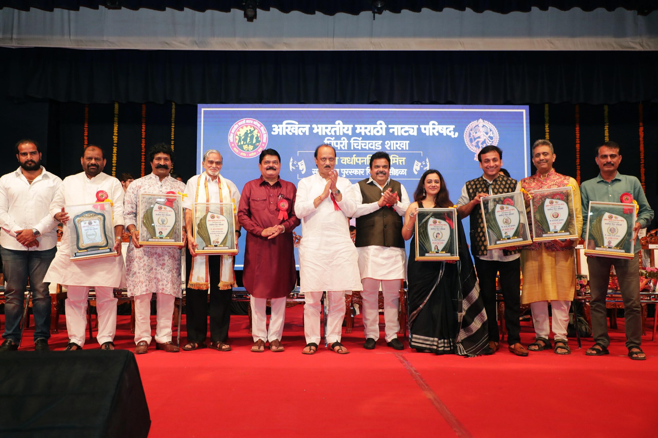 अखिल भारतीय मराठी नाट्य परिषद, पिंपरी चिंचवड शाखेच्या २९ व्या वर्धापन दिनानिमित्त प्रा. रामकृष्ण मोरे नाट्यगृहात आयोजित पुरस्कार वितरण सोहळ्यात उपमुख्यमंत्री अजित पवार बोलत होते. या प्रसंगी अखिल भारतीय मराठी नाट्य परिषद, मध्यवर्ती संघटना, मुंबई चे विश्वस्त अशोक हांडे हे या कार्यक्रमास प्रमुख पाहुणे म्हणून उपस्थित होते. यावेळी व्यासपीठावर नाट्य परिषद पिंपरी चिंचवड शाखेचे अध्यक्ष भाऊसाहेब भोईर यांच्यासह पदाधिकारी उपस्थित होते. १०० व्या अखिल भारतीय मराठी नाट्य संमेलनाचे स्वागताध्यक्ष अजितदादा होते मात्र संमेलनाला येऊ न शकल्यामुळे त्यांचा मध्यवर्ती शाखेचे विश्वस्त अशोक हांडे,उपाध्यक्ष भाऊसाहेब भोईर आणि नियामक मंडळाचे सदस्य सुहास जोशी यांच्या हस्ते त्यांना स्मृती चिन्ह देऊन सन्मानित करण्यात आले.