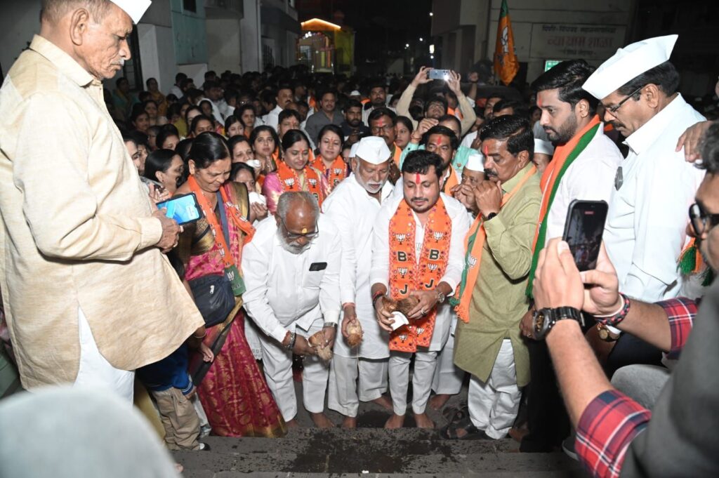 पिंपरी-चिंचवड महापालिका निवडणुकीच्या प्रचारात भाजपाचे नगरसेवक उमेदवार शत्रुघ्न काटे यांच्या नेतृत्त्वात प्रभाग क्र. 28 (पिंपळे सौदागर-रहाटणी) क्षेत्रात जोरदार प्रचार सुरू केला आहे. ग्रामदैवत श्री मुंजोबा मंदिरात आशीर्वाद घेण्यात आला. त्यानंतर छत्रपती शिवाजी महाराज यांच्या शिल्पासमोर नतमस्तक होत प्रचाराचा शंखनाद केला. यावेळी पक्षाचे पदाधिकारी, कार्यकर्ते, ग्रामस्थ, नागरिक आणि मित्र परिवार मोठ्या संख्येने उपस्थित होते.