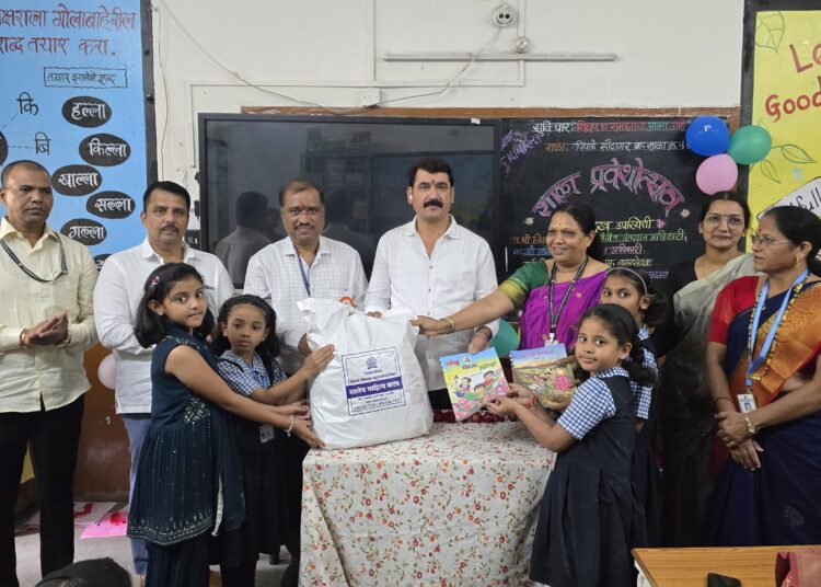 The first day of the academic year was celebrated as “School Admission Day” with great enthusiasm at Primary School No. 51 in Pimple Saudagar. On this occasion, the PCMCs Leader of Opposition, Mr. Nana Kate, warmly welcomed the students by presenting them with flowers and essential school supplies.