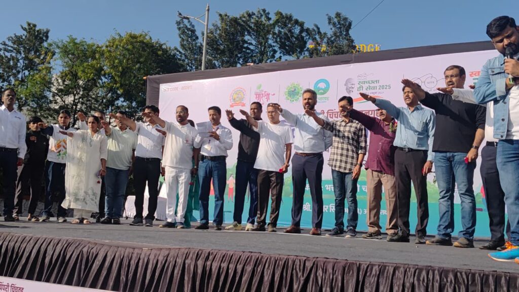*पिंपरी, २५ सप्टेंबर २०२५ :* पिंपरी चिंचवड महापालिकेच्या “श्रमदान एक दिवस – एक तास – एक साथ” या उपक्रमाने निगडीतील भक्ती शक्ती चौकात स्वच्छतेचा महाउत्सव आज नागरिकांनी अनुभवला. सकाळच्या प्रसन्न वातावरणात “स्वच्छतेची शपथ” घेत दोन हजारांहून अधिक नागरिकांनी स्वच्छता मोहिमेत सहभाग घेतला. भक्ती शक्ती चौकातून ट्रान्सपोर्ट नगरी चौक, देहूरोड चौक, अंकुश चौक, पिंपरी चौक, आकुर्डी चौक याठिकाणी जाणाऱ्या रस्त्यांवर स्वच्छता मोहिम राबवत जवळपास १२ टन कचरा गोळा करण्यात आला. आमदार उमा खापरे आणि महापालिका आयुक्त तथा प्रशासक शेखर सिंह यांच्या हस्ते या मोहिमेचा शुभारंभ झाला.