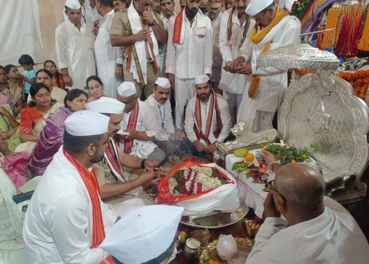 पुणे, दि. १९ जून२०२५: जिल्हाधिकारी जितेंद्र डूडी, पिंपरी चिंचवड पोलीस आयुक्त विनय कुमार चौबे आणि जिल्हा परिषदेचे मुख्य कार्यकारी गजानन पाटील यांच्या हस्ते इनामदार वाड्यात श्री संत तुकाराम महाराजांच्या पादुकांची शासकीय महापूजा संपन्न झाली. त्यांच्या हस्ते पादुकांचे पाद्य पूजन करून आरती झाली.
