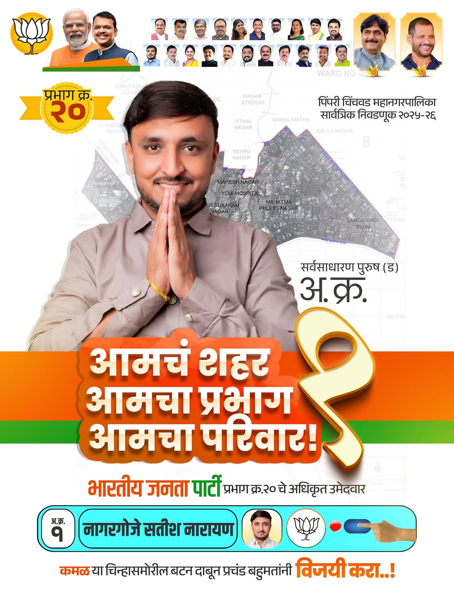 “हा वादा म्हणजे केवळ पोस्टरवरचा मजकूर नाही, तर नागरिकांसोबत केलेला विश्वासाचा करार आहे. प्रभाग क्रमांक २० चा सर्वांगीण विकास हाच माझा संकल्प आहे,” अशा शब्दांत भाजप उमेदवार सतीश नागरगोजे यांनी आपली भूमिका स्पष्ट केली.