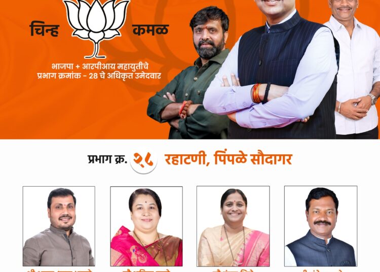 पिंपरी, पिंपरी-चिंचवड महानगरपालिकेच्या सार्वत्रिक निवडणूक 2026 च्या पार्श्वभूमीवर रहाटणी–पिंपळे सौदागर प्रभाग क्र. 28 मधून भारतीय जनता पार्टीने शत्रुघ्न (बापू) काटे यांच्या नेतृत्त्वाखाली एक सक्षम व अनुभवी पॅनेल निवडणूक रिंगणात उतरवले आहे. ‘मिशन-PCMC’ अंतर्गत प्रभागाच्या सर्वांगीण विकासाच्या मुद्यांवर ही निवडणूक लढविण्याचा निर्धार पॅनेलने व्यक्त केला आहे.